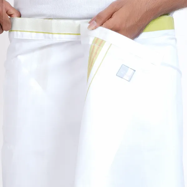 MENS 2 METER READY TO WEAR PISTA GREEN BORDER WHITE DHOTI