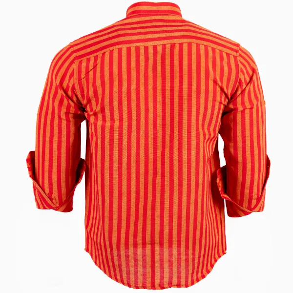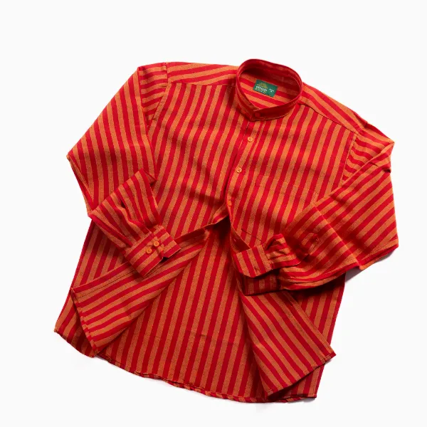 Mandarin Collar Full Sleeve Stripes Shirt (Dark Red):