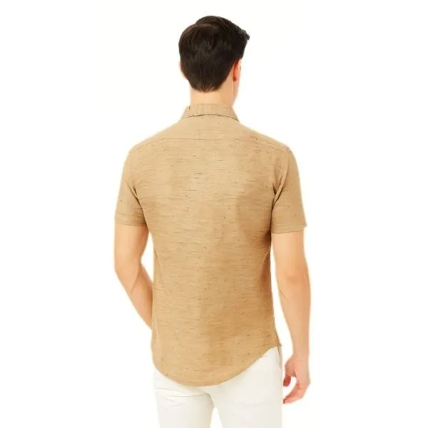 MENS HALF SLEEVE BLENDED COTTON SHIRT LIGHT BROWN