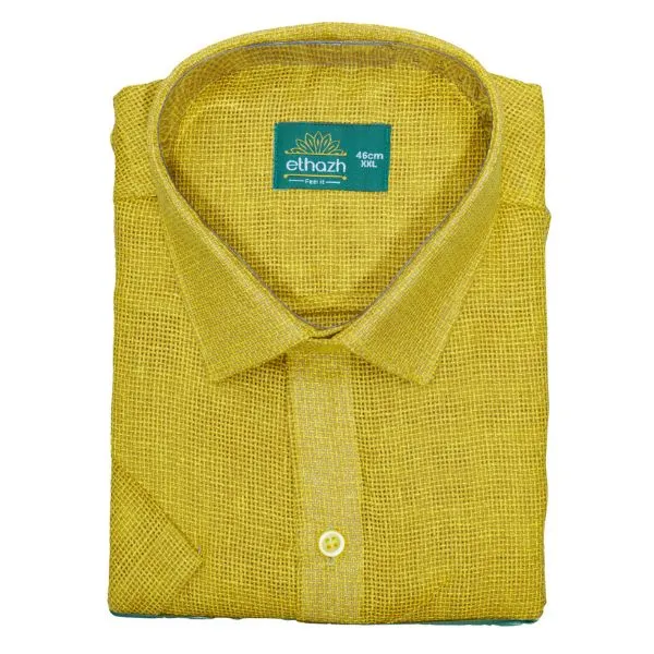MENS HALF SLEEVE JUTE COTTON PREMIUM SHIRT MUSTARD